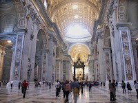 How did he create that illusion of the unfinished Baldacchino? It looks convincingly empty to her. She begins to feel queasy.