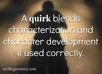 As with all my great labors these days, I turn to the Internet. And seeking, I found several great essays on character-building, especially my favorite part of it, character quirks.